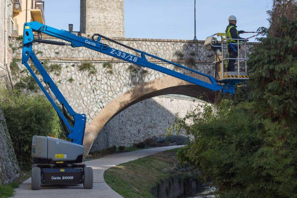 With the zero-emissions Genie® Z®-33/18 articulating electric boom lift, drive through standard doorways, around obstacles and access overhead work from aisles even in areas where weight is limited. Versatile and simple to operate, this boom lift is ideal for multiple indoor and outdoor jobs on sensitive grass or paved surfaces and flooring such as airports, shopping centres, theatres, etc.