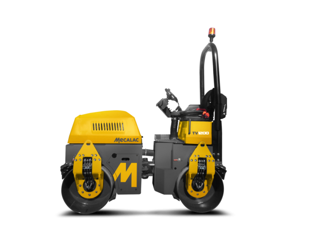 Arguably some of the toughest in the world, the Mecalac range of compact Tandem Rollers are designed for the rigorous demands of the Plant Hire industry. Meeting world-wide compaction standards for asphalt and granular layers, these machines not only provide ‘rental toughness’ they are operator friendly, high productivity rollers. The hydrostatic power management provides excellent hill climbing ability and when combined with the superb articulation delivering a tight turning circle, these are highly manoeuvrable machines. The TV1200 features a 1200mm wide drum.