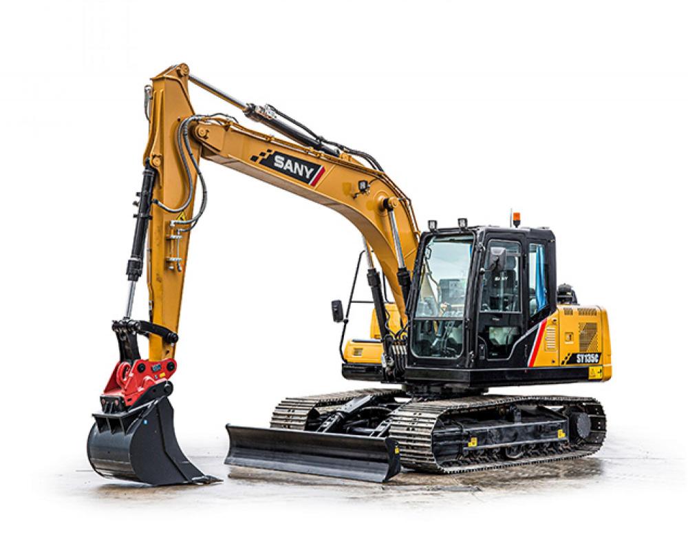 The SANY SY135C tackles work extremely efficiently as a compact excavator. High performance and impressive stability – the perfect combination to complete all tasks quickly and reliably on site. Its large working radius is also a plus point, with a maximum horizontal reach of 8,290 mm and maximum excavation depth of 5,500 mm.
